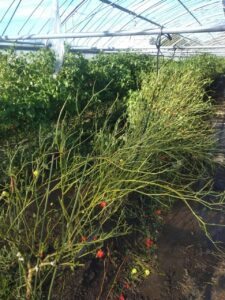 ビニールが飛び収穫期のハバネロ1/4程が倒れてしまいました。また農産倉庫やグループ